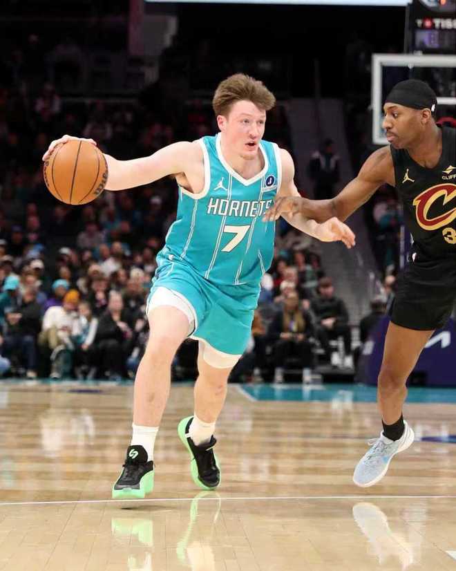 中場休息回來,騎士維持58-35領(lǐng)先優(yōu)勢,黃蜂一波9-0攻勢追分,騎士連得4分鞏固18分優(yōu)勢。騎士之后維持69-51領(lǐng)先優(yōu)勢,騎士內(nèi)外開花一波7-1攻勢追到差12分,波特三分開火率領(lǐng)騎士擴大16分優(yōu)勢。黃蜂再追4分,騎士單節(jié)20-32被追回12分,三節(jié)結(jié)束騎士被追到76-64領(lǐng)先黃蜂。前三節(jié)比賽,騎士三分31中7,米切爾18分、莫布利14+11、阿倫11+6;黃蜂三分34中6,米勒19分與克尼佩爾12分、三球13中1僅得到2分7助攻。