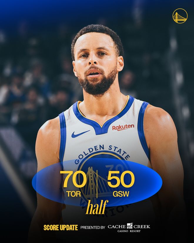 猛龍隊的奎克利上半場得到18分,巴恩斯得到14分、4個籃板和6次助攻,馬姆科拉什維利得到11分和8個籃板;勇士隊的庫里得到12分,佩頓得到9分。