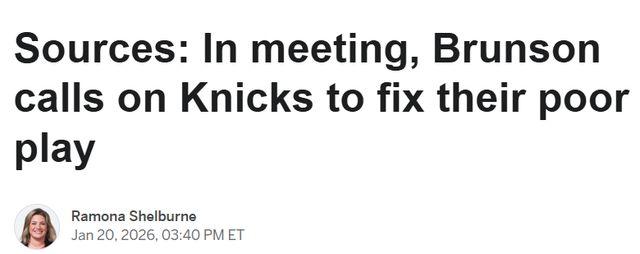 多位消息人士稱,球隊在11場比賽中輸?shù)?場,并吞下4連敗后,布倫森在會議中向隊友們明確,尼克斯必須在隊內(nèi)為一月以來的糟糕表現(xiàn)尋找解決辦法,而非寄希望于教練組。