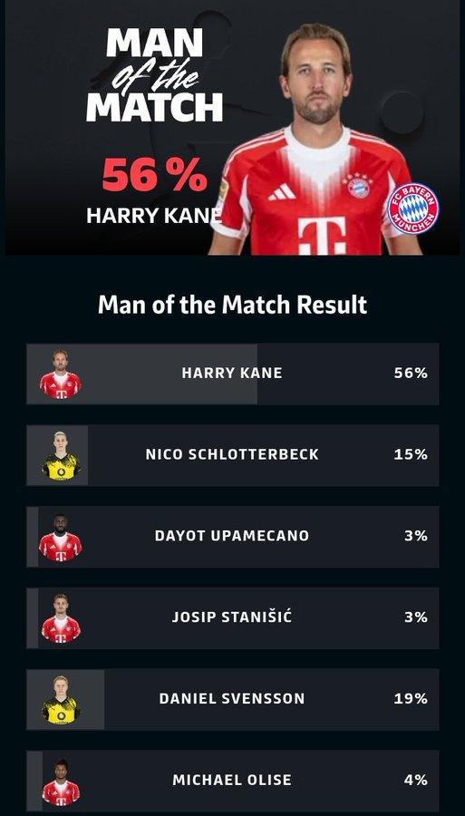 凱恩當(dāng)選全場最佳,恩梅查承認(rèn)拜仁掌控比賽